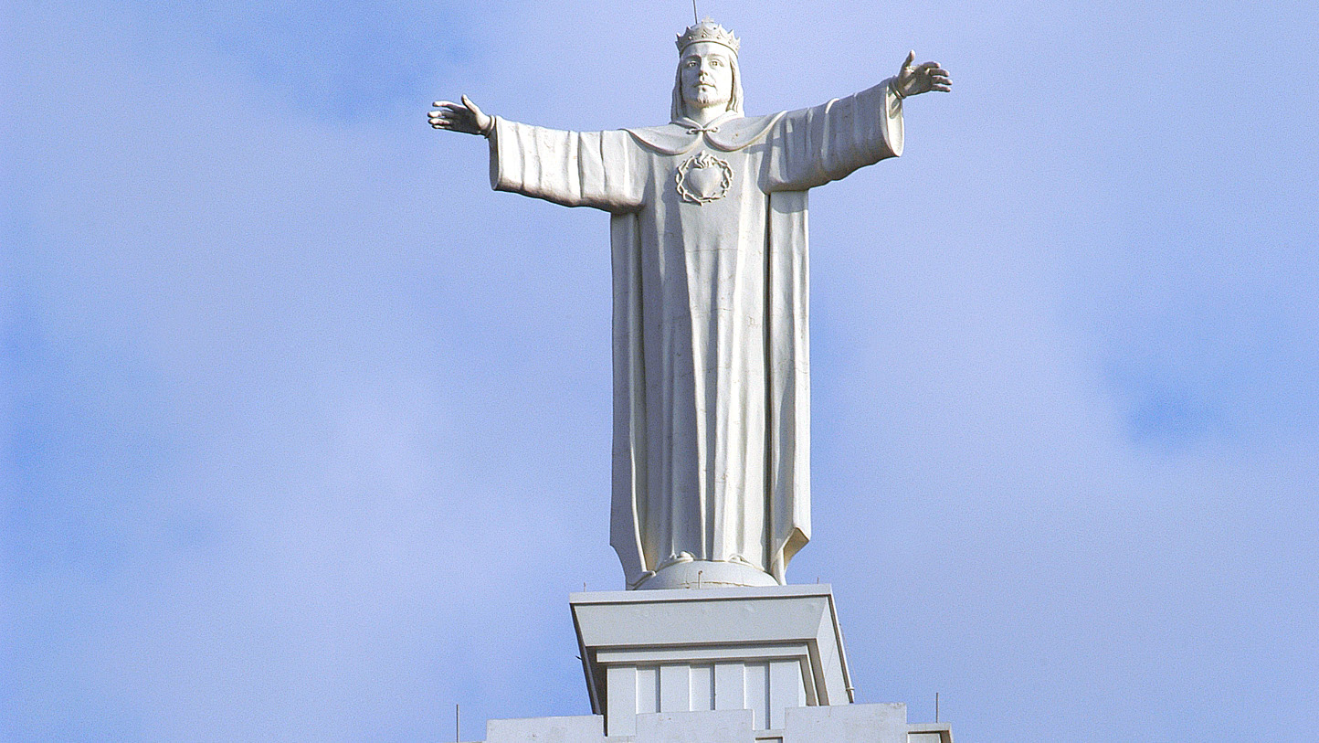The idea of erecting a statue for Christ the King preoccupied Blessed Abouna Yaacoub. He began work in 1950. During work, the workers discovered an underground natural grotto. As soon as he heard the news, Abouna Yaacoub exclaimed with joy: “This is for the Queen. There can be no King without a Queen”; thus, the place is arranged to be a shrine for the Virgin, Queen of the Universe. In 1951, he built the church, crowning its dome with a statue of Christ the King reaching 12 meters in height and 75 tons in weight.