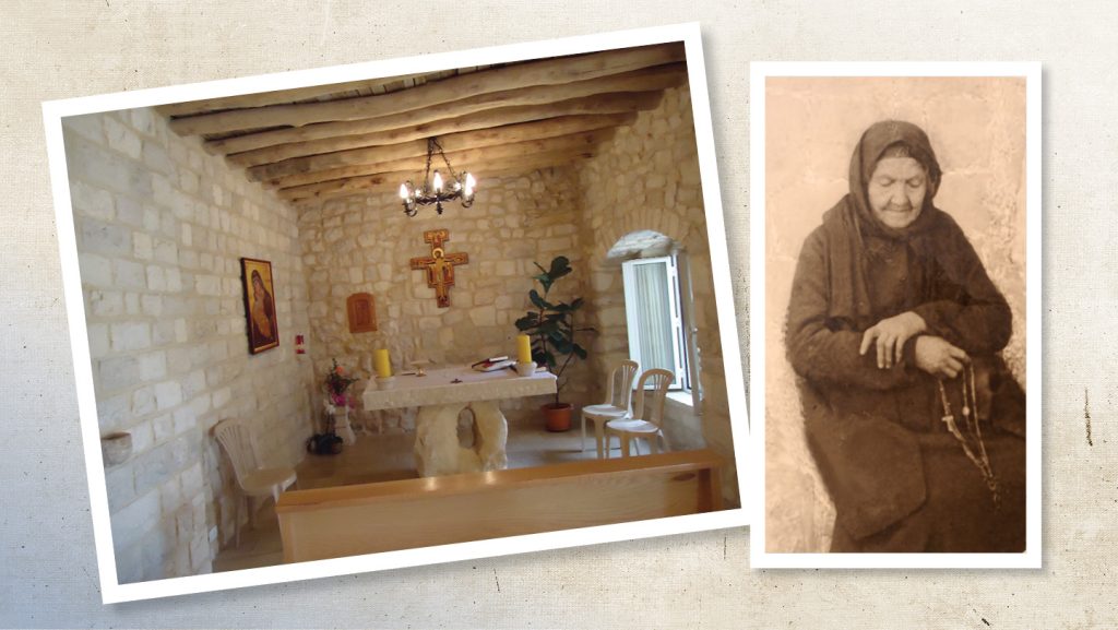 La maison se constitue de trois chambres à coucher, d’une cuisine à l’étage supérieure, de deux chambres de détente à l’étage inférieure. La cuisine où Chams préparait le repas de la famille, est aujourd’hui une église habitée du Saint-Sacrement, nourriture des âmes.