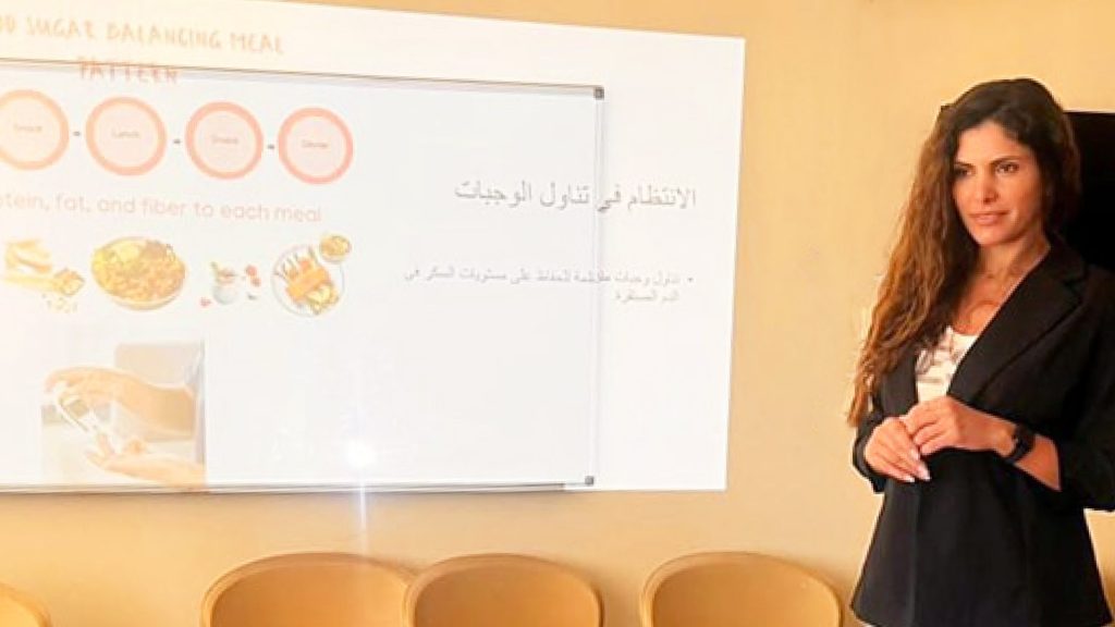 محاضرة حول التوعية الغذائيّة، أكّدت فيها على أهمّيّة اتّباع نظام غذائيّ صحّيّ،